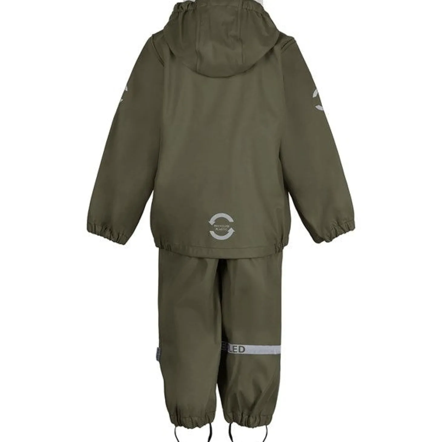 Tag dine børn med ud i regnen iført dette smarte regnsæt fra Mikk-Line i en flot dusty olive farve. Regntøjet er både vind- og vandtæt med svejsede sømme, så dine børn kan lege uden bekymringer. Jakken har lynlås, trykknapper, hagebeskyttelse og en aftagelig hætte, mens bukserne har justerbar talje og fodstropper. Reflekterende detaljer øger synligheden, og indvendigt er der plads til barnets navn. Alt regntøj fra Mikk-Line er lavet af genbrugsmateriale, og størrelserne 74-104 kommer med seler.