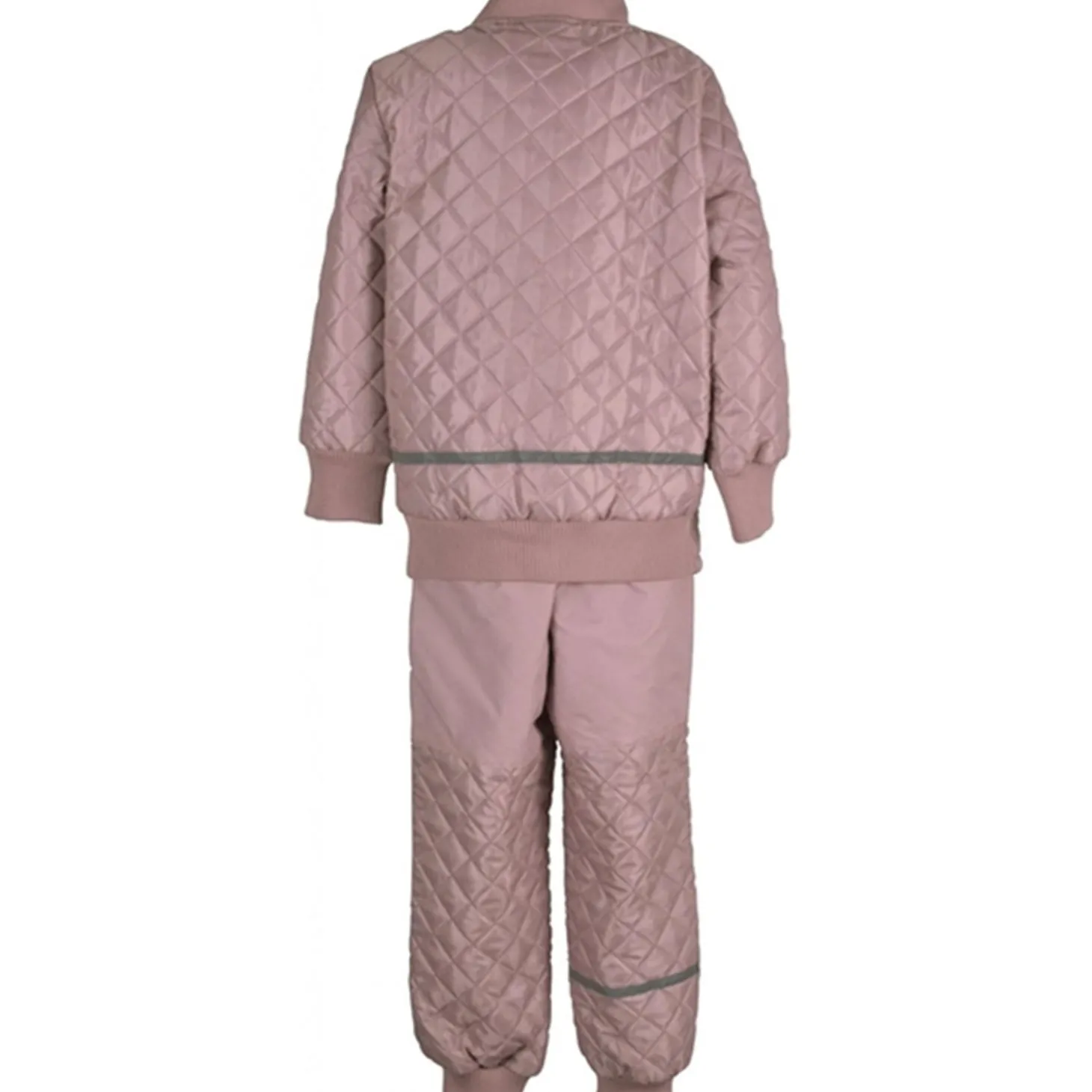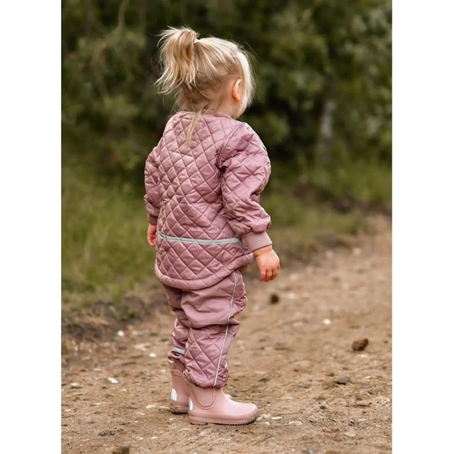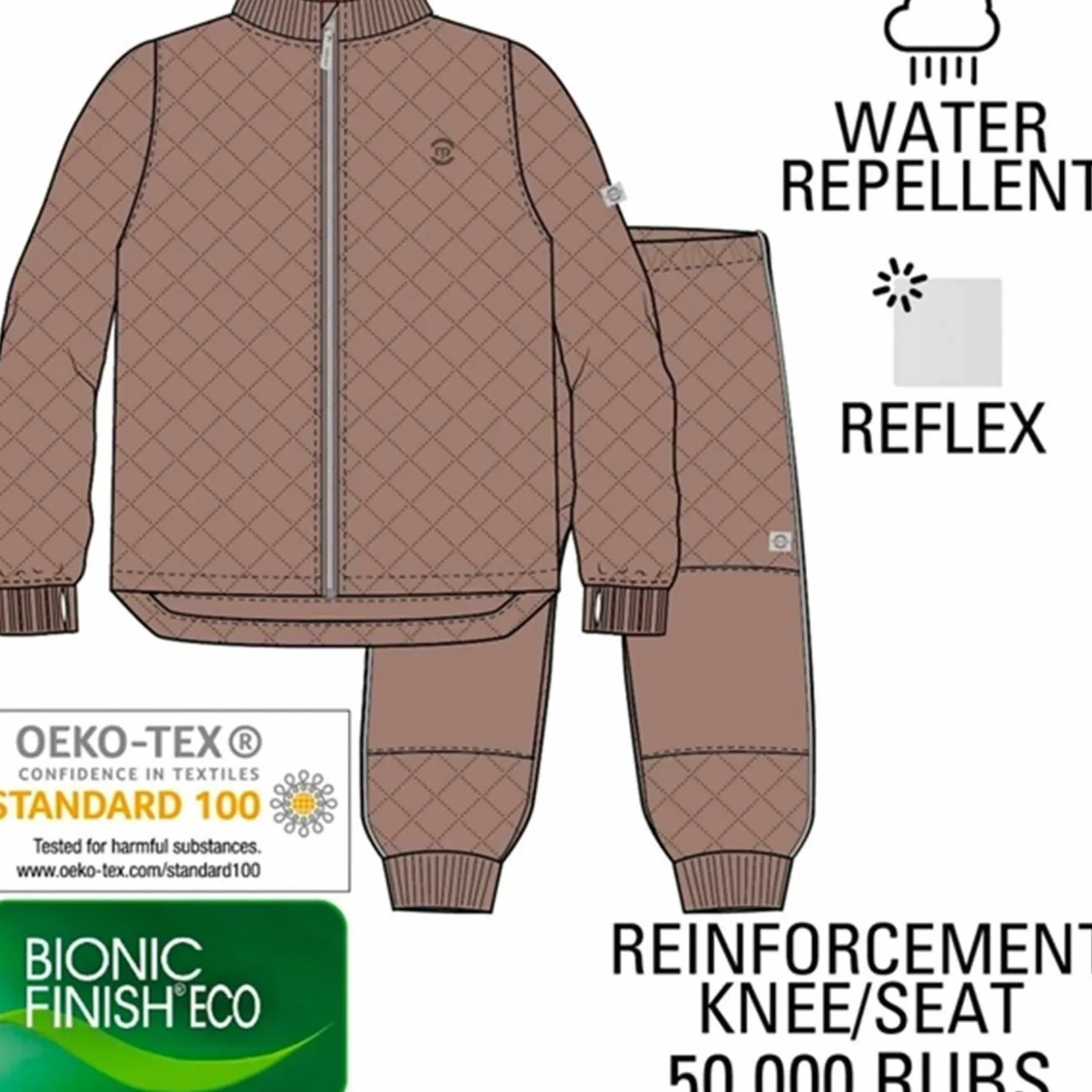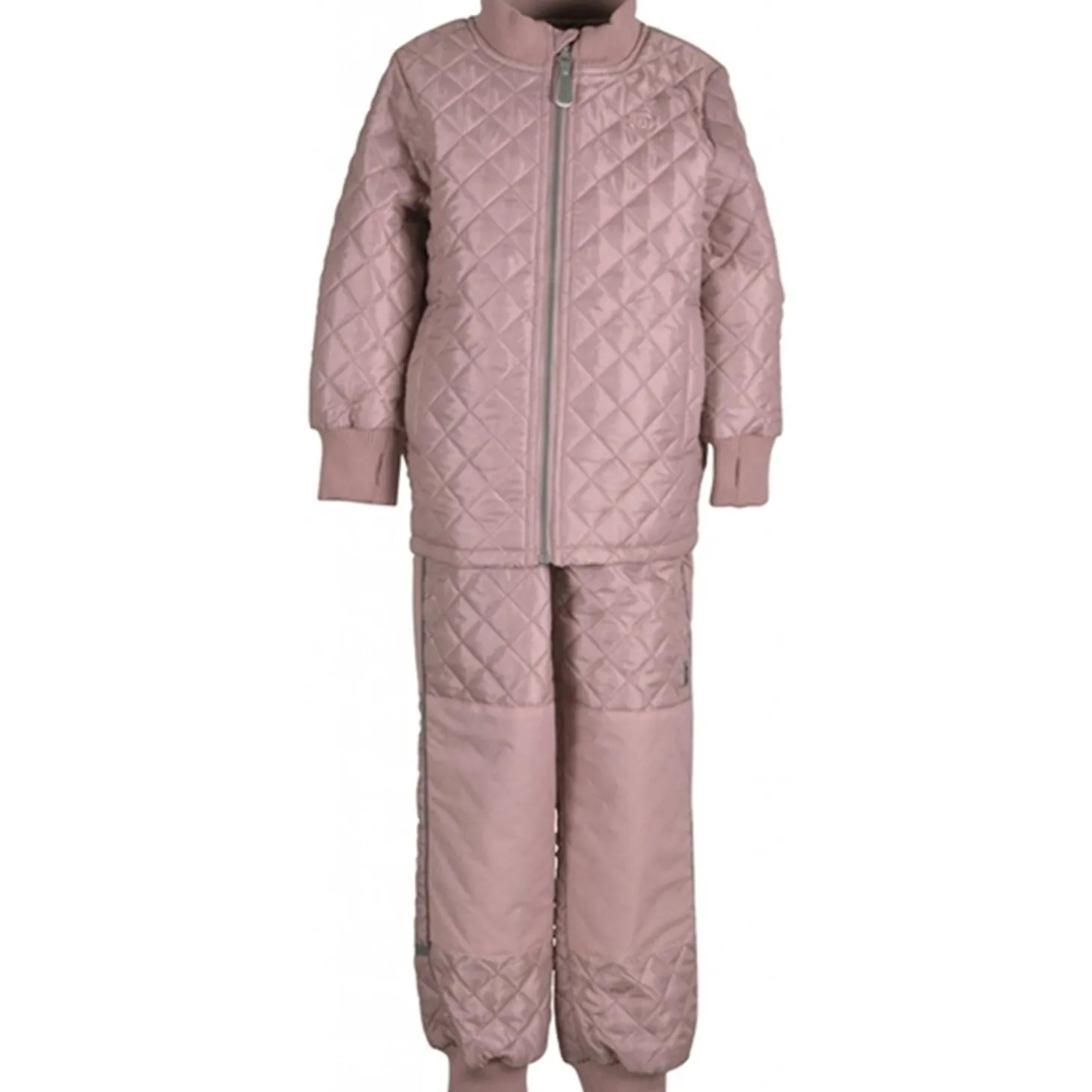 Oplev varmen og komforten med Mikk-Line Termosæt Basis i farven Adobe Rose. Dette termosæt er skabt til at holde dine små varme og tørre, med sin vandafvisende kvalitet, der sikrer beskyttelse mod elementerne. Med ekstra forstærkning på knæene og numsen er dette sæt ideelt til leg og udfoldelse udendørs.