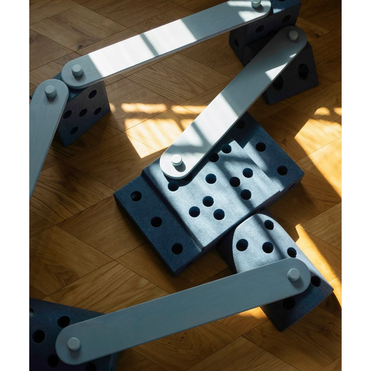 Det enkle design inspirerer til utallige konstruktioner som forhindringsbaner og broer, og er ideelle for børn i alderen 3 til 8 år. Hver balancebom måler 70 x 10 x 1,4 cm og kan bære op til 80 kg, hvilket gør dem lette at opbevare og rengøre med en fugtig klud.