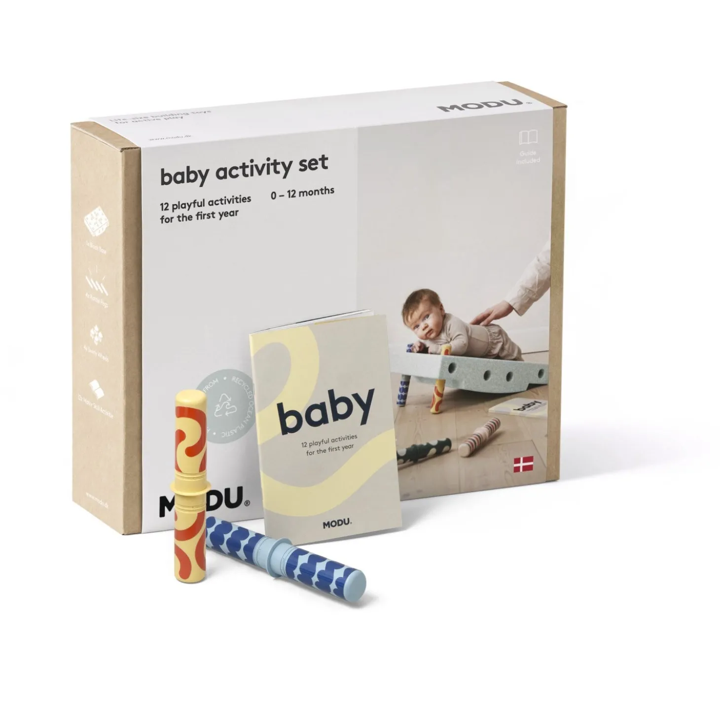 De levende farver og tiltalende mønstre udforsker babyens syn og følesans, mens de raslende lyde vækker deres nysgerrighed. MODU Baby Motoriksæt er et uundværligt redskab til at styrke motorikken og opmuntre til leg hver dag, året rundt.