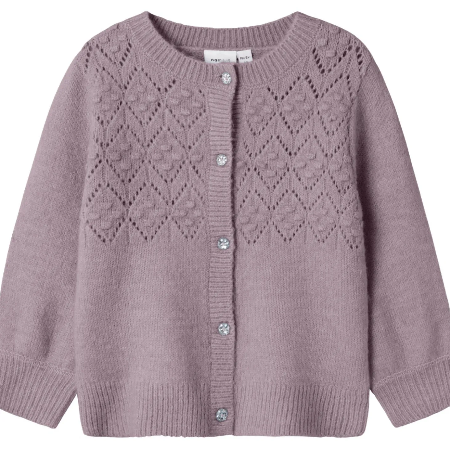 Forkæl dit barn med denne Name It Elderberry Batrille Strik Cardigan, der kombinerer komfort og stil på bedste vis. Den bløde pointelle-strik og det geometriske design giver et moderne twist til denne elegante cardigan, der er ideel til hverdagsbrug. Med en klassisk rund hals, lange ærmer og praktiske ribmanchetter er dette tøjstykke både funktionelt og modebevidst. Knaplukningen gør det let at tage cardiganen af og på, og den almindelige pasform sikrer behagelig komfort hele dagen. Et must-have i enhver børnegarderobe, der garanterer varme og stil til enhver lejlighed.