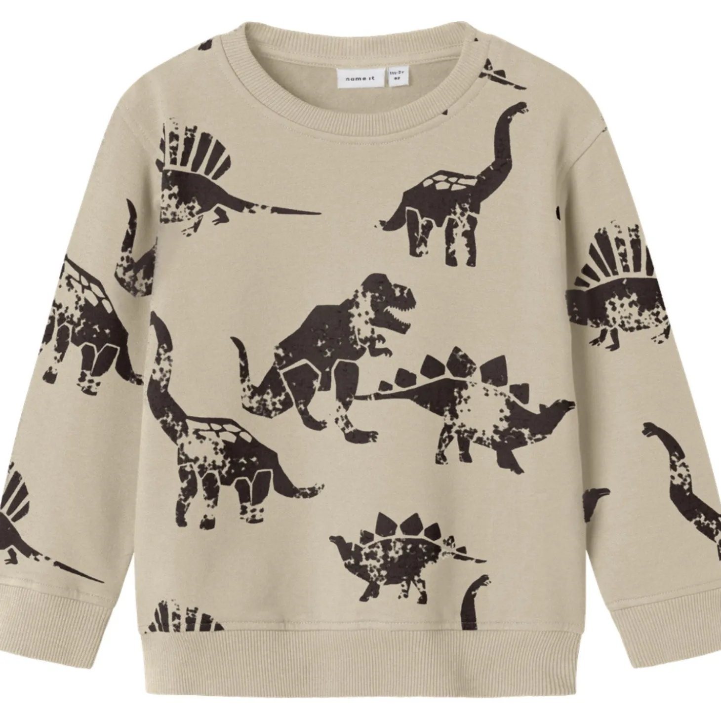 Opfrisk din lille eventyrers garderobe med denne stilfulde Name It Island Fossil Nmmnilaus Ls Nreg Sweat Bru sweatshirt. Denne sweatshirt er det perfekte valg til hverdagsbrug, da den kombinerer komfort med et cool design. Lavet af blødt børstet sweatstof, giver den en behagelig følelse indvendigt, så dit barn kan føle sig godt tilpas hele dagen. Med sit trendy all-over print, klassiske runde hals og lange ærmer, tilbyder denne sweatshirt en afslappet, men smart pasform, der passer til enhver lejlighed.