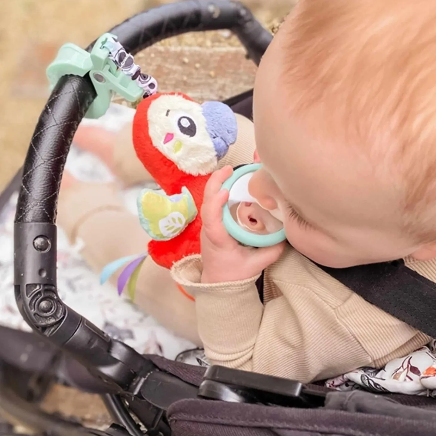 Aktivitetsophæng, der nemt kan hænges op i barnevognen/klapvognen, fyldt med sanselige oplevelser og sjove lyde, der vil underholde dit barn. Fra 0 måneder.