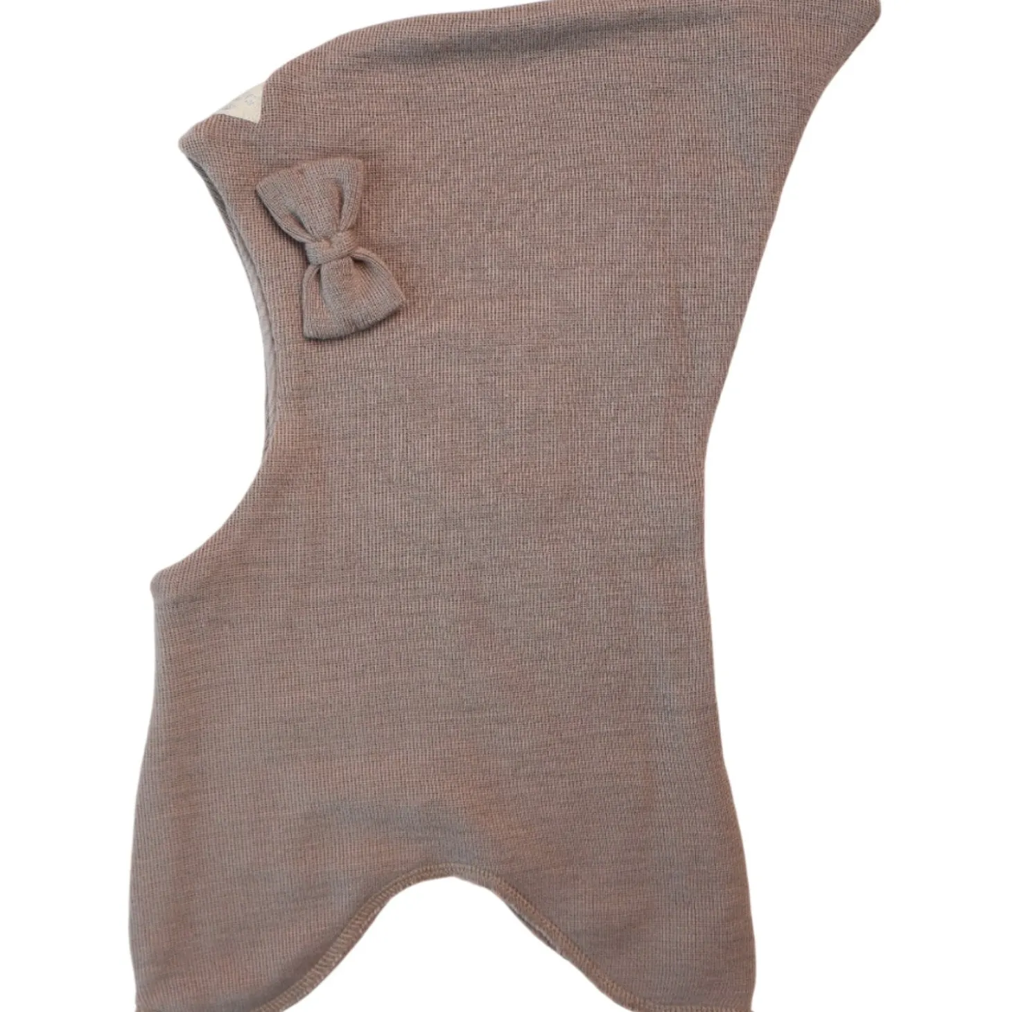 Fremstillet af blød uld og økologisk bomuld sikrer huen en behagelig følelse mod huden. Et ekstra lag thinsulate ved ørerne tilføjer yderligere isolering. Det funktionelle og æstetisk tiltalende design inkluderer en charmerende sløjfe, der giver huen et sjovt og stilfuldt udtryk.