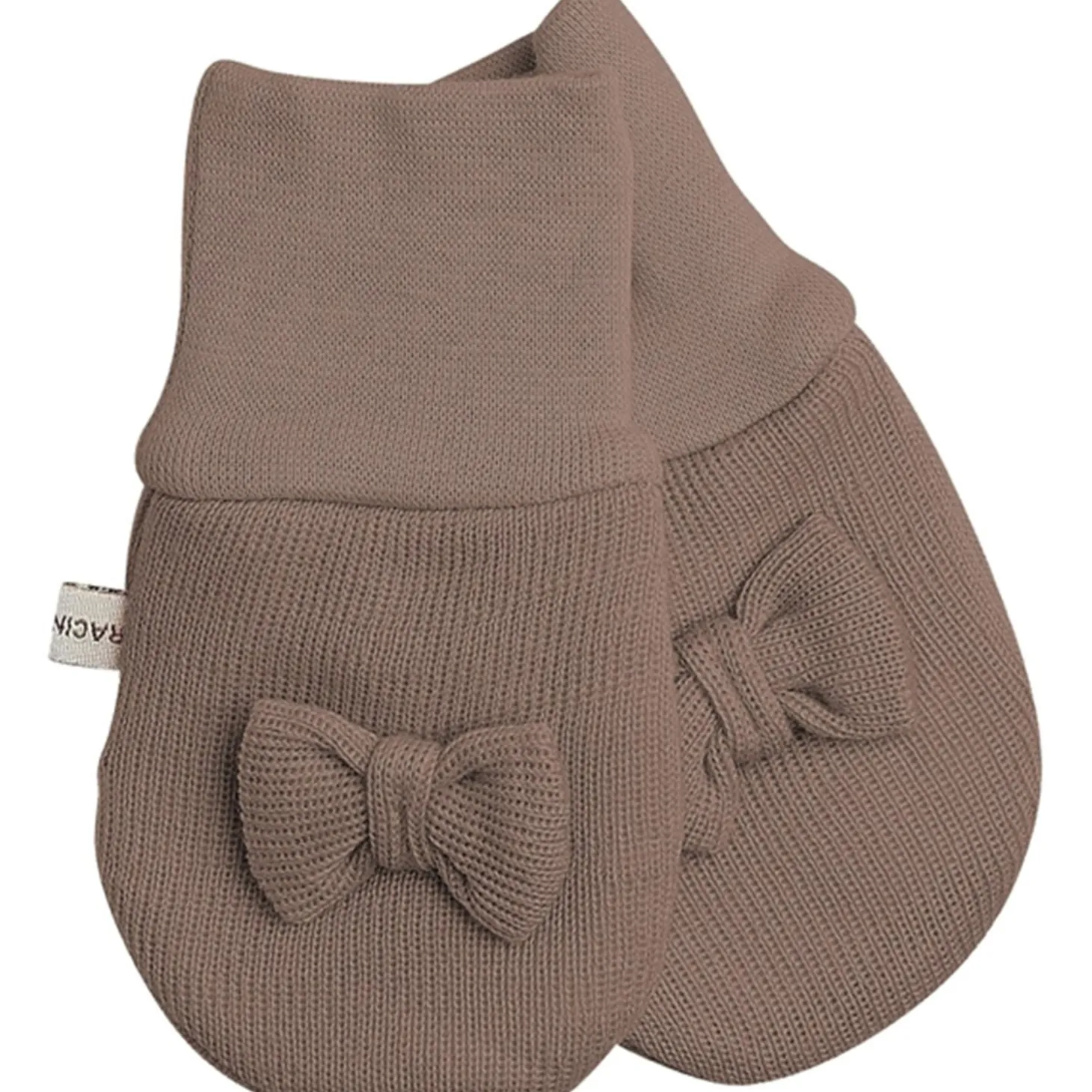 Disse babyvanter er den perfekte kombination af stil og funktionalitet og er nemme at passe på med vaske- og brugsanvisningen. Lad de små se smarte ud i disse vanter med en sød sløjfe i rose brown farve.