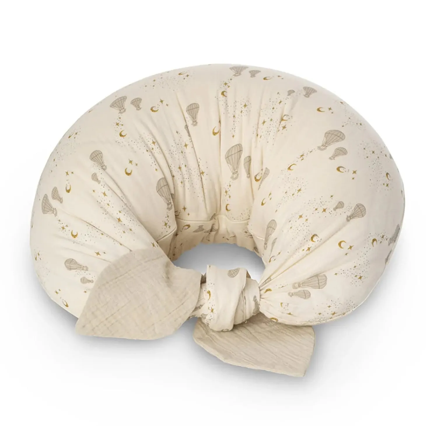 Denne skønne innovative og multifunktionelle ammepude er designet til de vordende og nybagte forældre for at give den bedste start på et helt nyt og fantastisk kapitel. Ammepuden imødekommer de vigtige behov, når babyen ammes eller gives flaske. Med denne nytænkende ammepude er det ingen udfordring at amme tvillinger, da længden er gjort lang og der dermed er plads til to babyer. Puden er praktisk og transportabel og skal blot bindes om kroppen. Denne funktion gør det særligt nemt, når man skal rejse sig for at løfte baby fra fx vugge til amning. I hver ende af ammepuden er der påsat et lille blødt blad, så babyen altid har en nusseklud ved hånden. Derudover er den formbar, så den er en behagelig støtte for mor og baby, når der ammes eller som en sovepude eller lændestøtte for den gravide. Samtidig er den en perfekt støtte, når babyen skal ligge på maven, som stol eller nakkestøtte, når barnet bliver større.