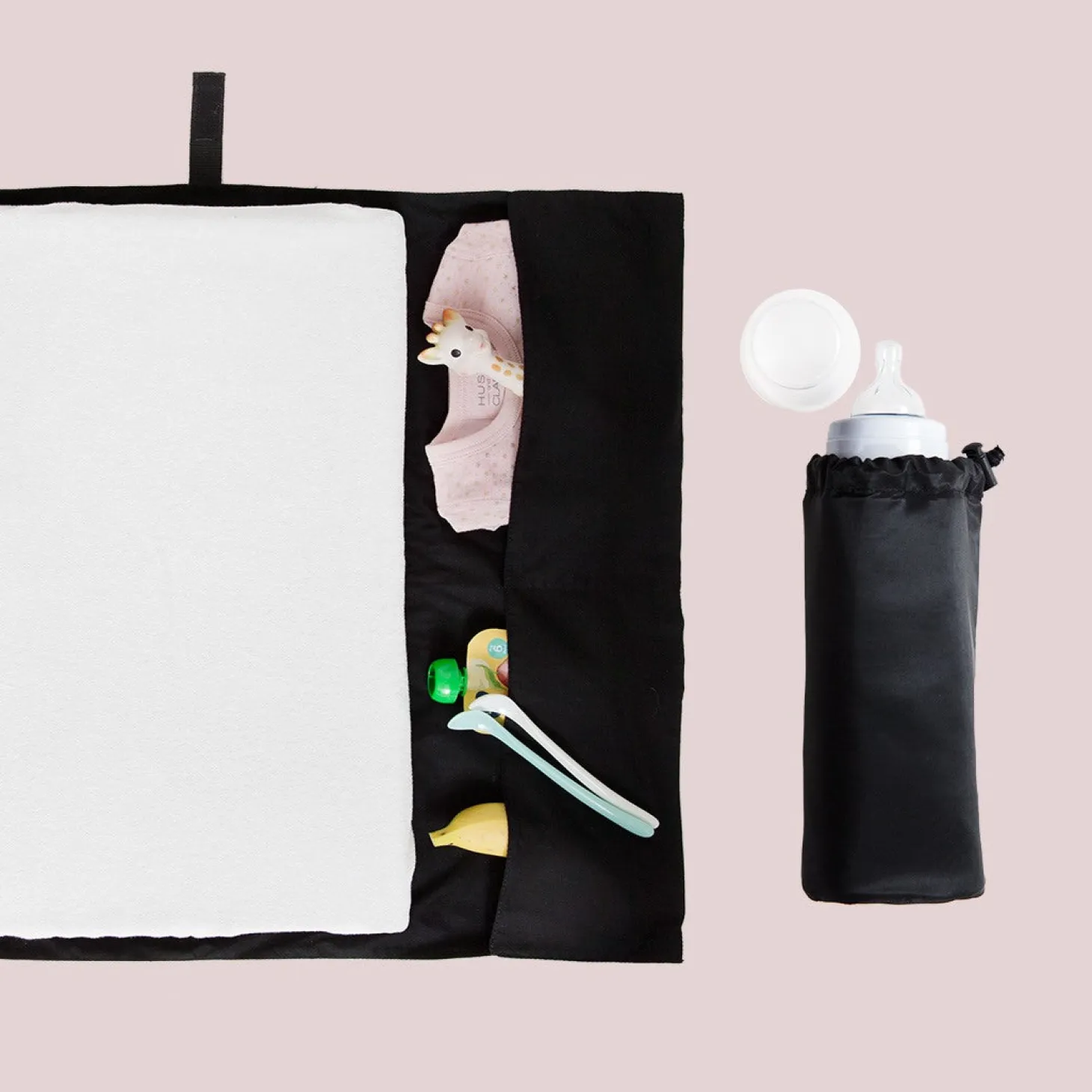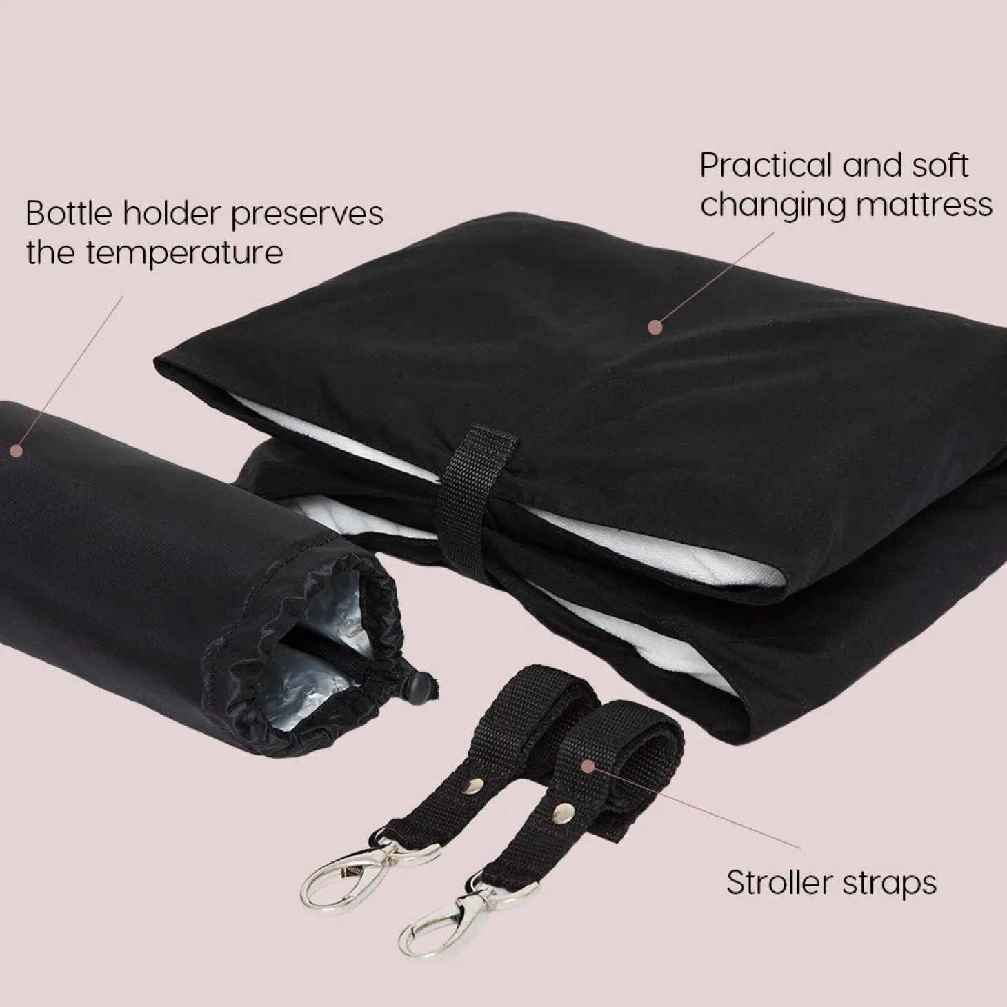 - Stropper så tasken nemt kan hænges på barnevognen.