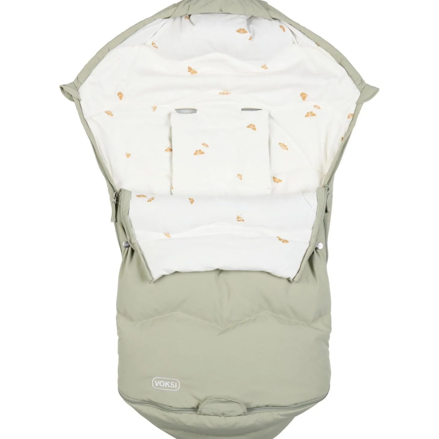 Med Voksi® Misty Green Explorer Misty Green-wings køreposen kan du trygt og komfortabelt tage dit barn med på eventyr. Denne kørepose er skabt til at sikre optimal komfort og beskyttelse, takket være det luftige ande- og dunfyld samt åndbar uldpolstring, der regulerer temperaturen perfekt.